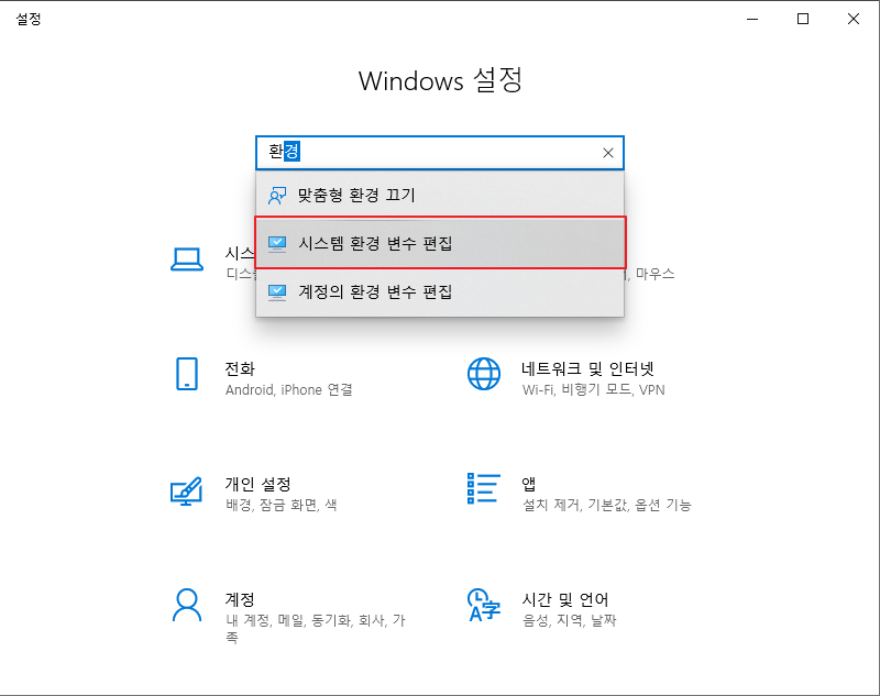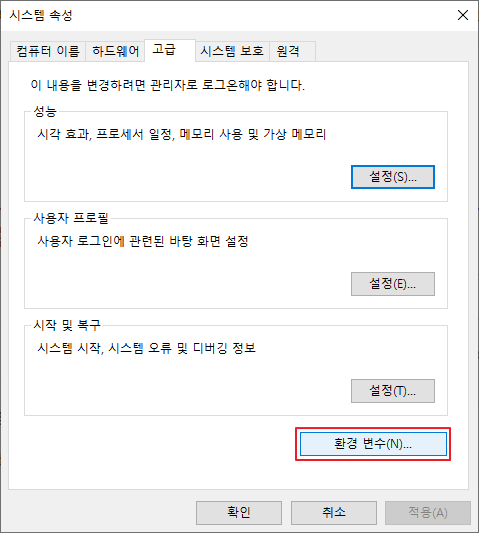 시스템 환경 변수 편집 (윈도우 10)